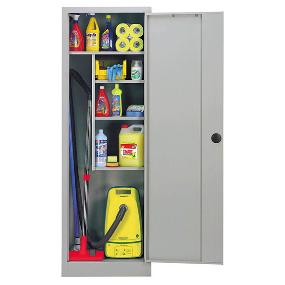 En conclusion, l’Armoire à Balai Métallique 1 porte battante peut accueillir tous les produits nécessaires à votre personnel. Son espace permet d’entreposer des balais, des seaux, des vêtements, des aspirateurs et bien d’autres produits d’entretien. Tout est donc à portée de main et accessible en un geste pour le plus grand confort de ses utilisateurs.
