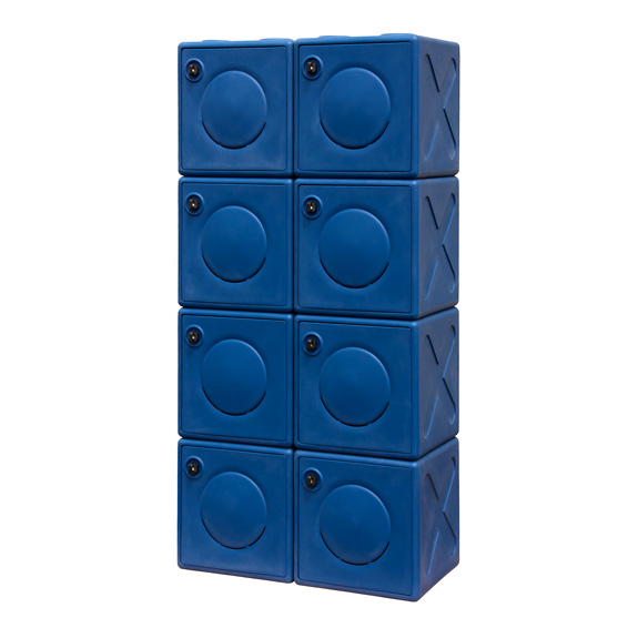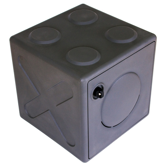 Avec sa forme cubique (450mm de longueur, largeur et hauteur), ce Casier PEHD au design ludique est ultra-résistant. Sa force se trouve principalement dans sa porte double peau, qui rend toute effraction très difficile. De plus, cette garantie est renforcée par un système de fermeture par moraillon porte-cadenas. Une serrure à clé, à code ou à monnayeur peut également servir de système de fermeture.