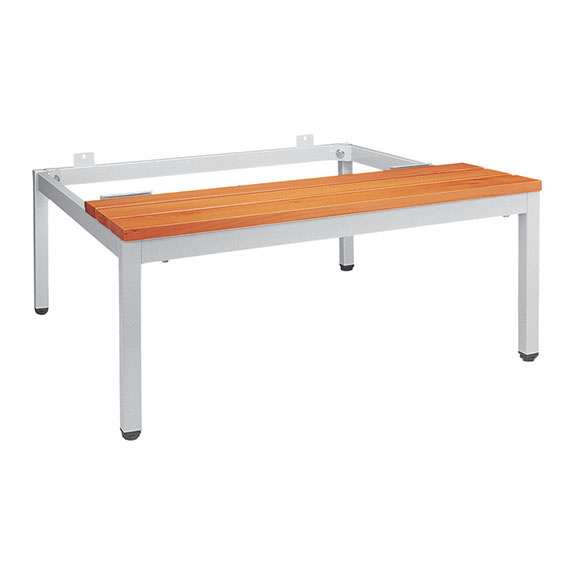 Un socle-banc est un accessoire alliant rehausse du vestiaire et banc. Il se compose d’un corps métallique et d’une assise bois ou mélaminé. Le socle-banc propose une surélévation du vestiaire de 420mm, ce qui facilite considérablement le nettoyage au sol. De plus, cela empêche l’eau de rentrer en contact avec le bas du vestiaire et ainsi évite toute corrosion. Sa partie vide vient se positionner sous le bloc de casiers. Elle se fixe par rivets ou par vis auto foreuse. L’assise banc quant à elle, sera placée à l’avant du produit sans entraver l’ouverture de la porte. Idéal dans des espaces restreints, le socle-banc permet aux utilisateurs d’avoir un espace sécurisé pour ranger ses affaires ainsi qu’une place convenable pour se changer.Un socle, deux matières