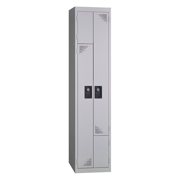 Respectant le code du travail, le vestiaire en métal portes L ou Z est un 2 en 1 absolu. En effet, ce type d’équipement est prévu pour loger les biens de 2 personnes. Chacune de ces personnes détient sa propre penderie et son casier personnel. De plus, le vestiaire portes Z, livré avec une structure assemblée, offre une économie de 30 % au sol. Le tout en vous permettant de bénéficier de véritables penderies.