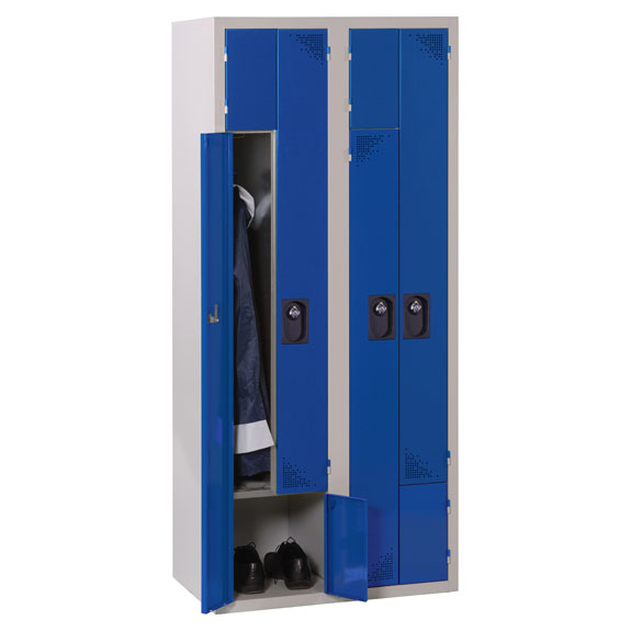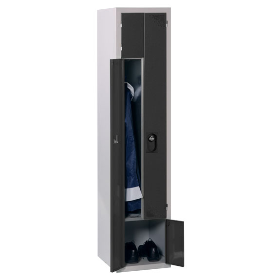 Le vestiaire en métal portes L ou Z allie confort et économie de place. Il est idéal pour ranger vos vêtements longs tout en économisant de la surface au sol. Sa force réside dans sa fonction 2 en 1, qui assure à votre personnel un espace confortable et polyvalent.